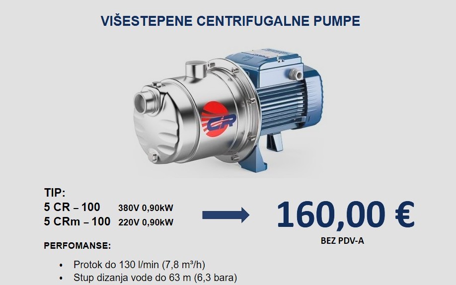 Ako tražite pouzdanu, tihu i snažnu pumpu za kućnu upotrebu, navodnjavanje ili hidroforski sustav — Pedrollo 5CR serija pravi je izbor! Ove peterostepene centrifugalne pumpe izrađene su od nehrđajućeg čelika...